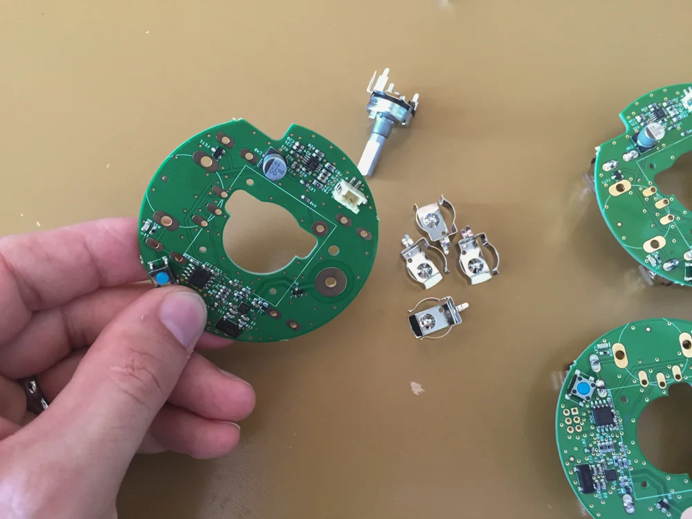 Un-package the box, and pull out the printed circuit board, 4 battery clips and potentiometer.