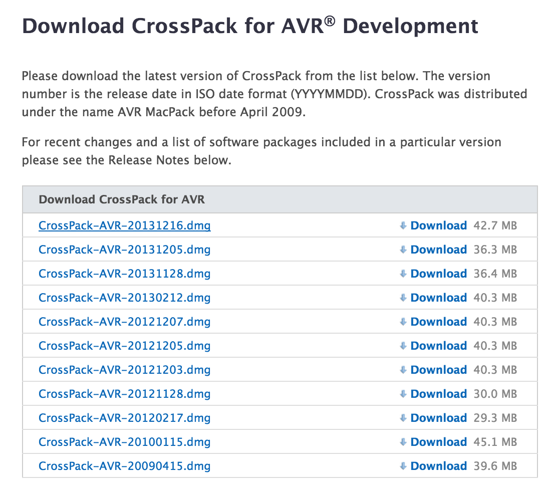 Install AVRDUDE by opening this link and clicking the download button for CrossPack. Download the most recent version - 20131216, and follow the prompts to install the program.