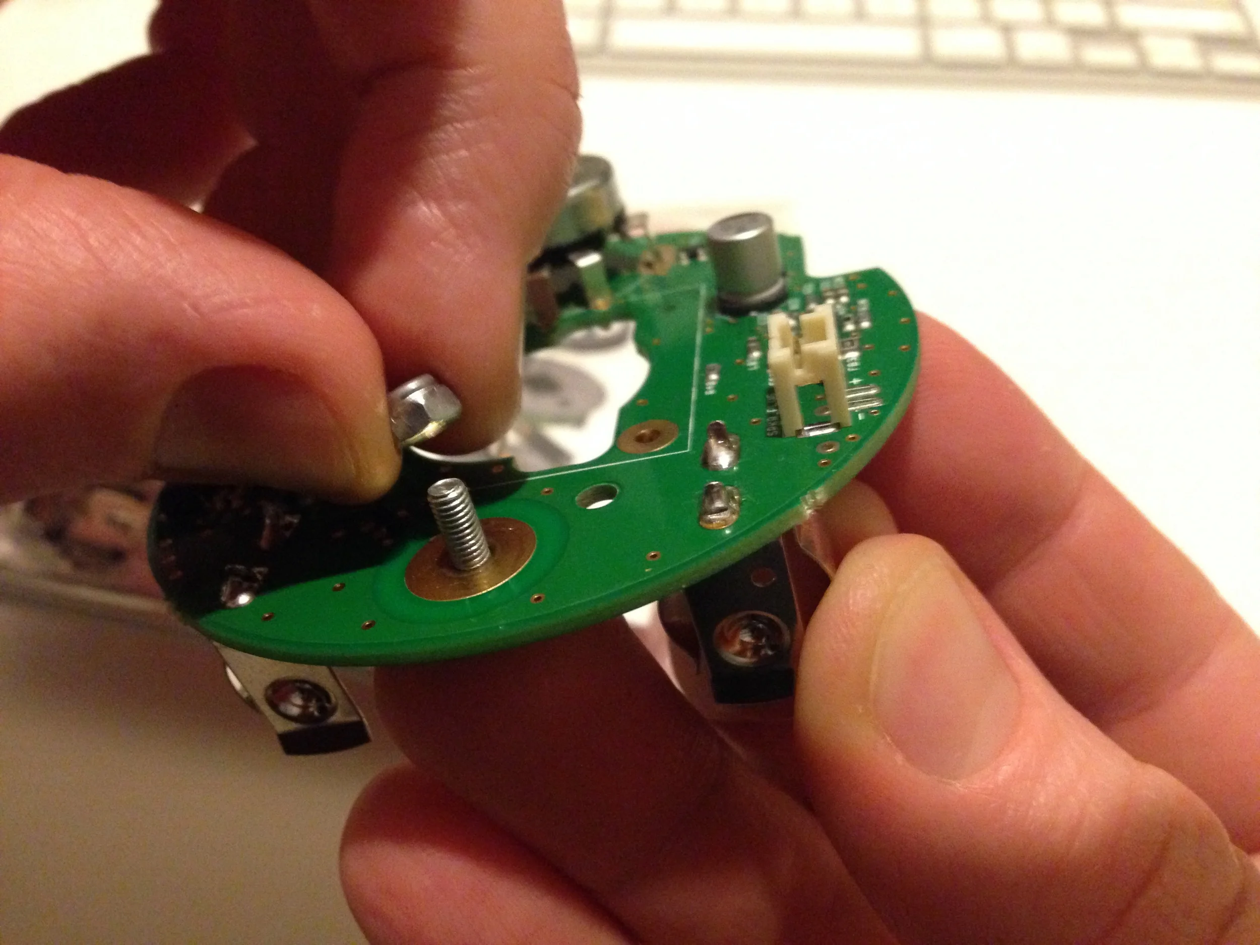 Flip over the PCB, and now you should have a pretty steady surface to solder the battery clips on. Break out that iron and solder those on.